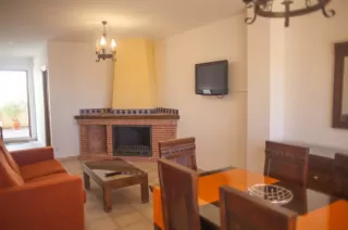 - Un amplio salón comedor, equipado con sillones, un sofá cama y con chimenea.