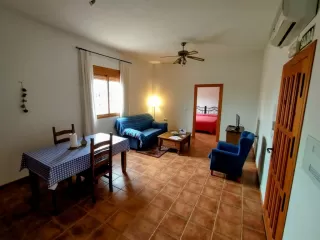 - petits appartements. Ils ont une chambre de mariage avec des draps et des couvertures. C salle de bain. Les zones communes sont la salle à manger qui communique avec sa cuisine . L'un des appartements est adapté pour les disqualides.