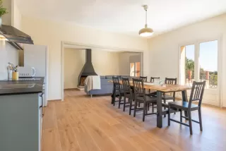 - Une spacieuse cuisine-salle à manger , avec accès direct sur l'extérieur, ainsi qu'une cheminée et un coin repos avec fauteuils et télévision.