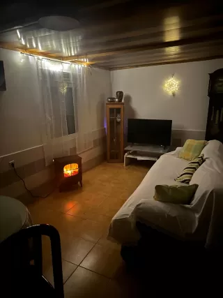 - Zona de salón con sofá y televisión.