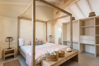 - Una cama de matrimonio amplia, con dosel.